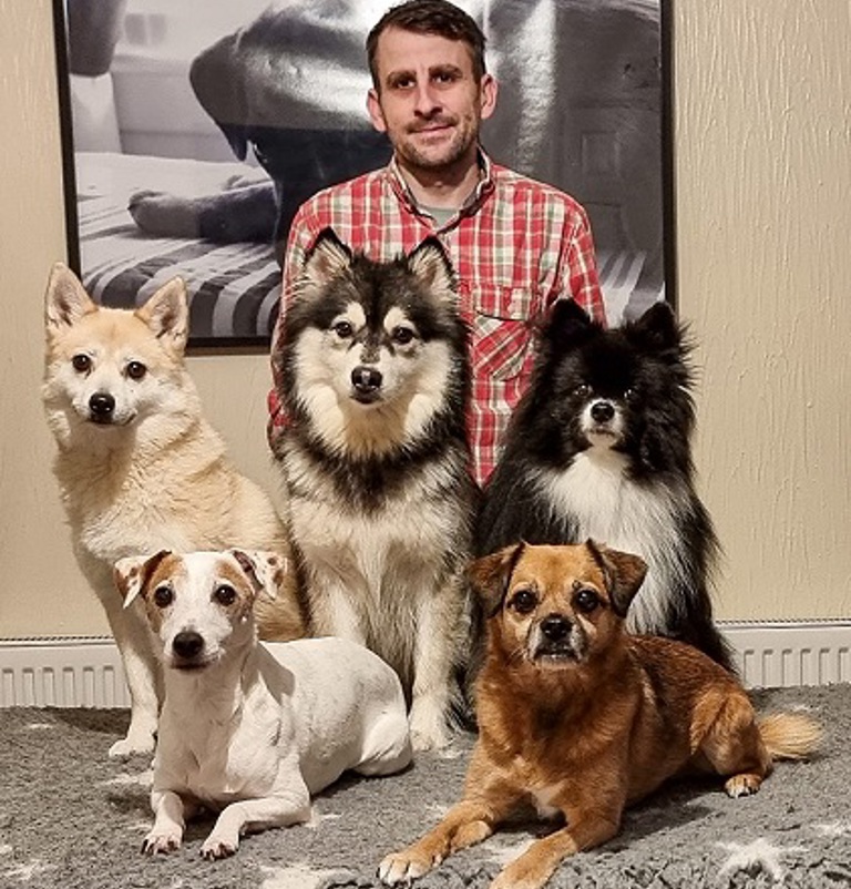 In 2016, we took in Sorsha, another Pomsky who had been rescued from a puppy farm. She was six months old and terrified of everything. Ellen recommended that, despite her age, we start her in the puppy classes to help rebuild her confidence. The results were amazing, and she quickly became part of our permanent pack.